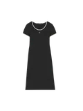 Платье с круглым вырезом и контрастными цветными вставками на линии воротника и краях рукавов. В центре расположена вышивка бренда. Изготовлено из мягкого и эластичного материала, обеспечивающего комфортную носку. Такой базовый предмет легко сочетается с разными образами.