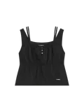 Топ с квадратным вырезом из лёгкого нейлона. Благодаря пуговицам на груди и двум бретелям он предлагает разнообразные варианты стилизации. Металлические детали дополняют образ, придавая ему изысканный вид.