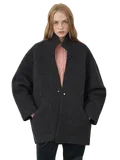 Это минималистичное пальто с воротником-стойкой, который естественно поднимается и обеспечивая тепло. Пальто имеет чистый и аккуратный силуэт, который идеально подходит для создания многослойных образов, а боковые карманы добавляют практичности.