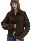 WOOL CABLE KNIT ZIP-UP CARDIGAN - тёплый и уютный джемпер на молнии из шерстяной смеси. Свободный крой и практичная двусторонняя молния позволяют легко менять образ. Карманы с обеих сторон добавляют функциональности, делая эту модель идеальной любого лука.