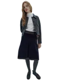 Юбка миди с цветовыми вставками из вельвета - это стильное и необычное решение для Вашего гардероба. Комбинация фактур и цветов добавляет образу динамичности и оригинальности. Благодаря вельвету она очень приятная на ощупь и тёплая, что идеально для прохладного времени. Эта модель позволит Вам легко выделиться и создать запоминающийся аутфит.