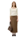 Юбка макси из плотной ткани с мягкой текстурой. Классический H-силуэт, разрез сзади для удобства ходьбы. Подходит для создания элегантных повседневных образов.