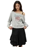 Свитшот с широким вырезом «лодочка», эффектно открывающим линию плеч. Необработанные края подчеркивают винтажную эстетику модели. Укороченный силуэт и свободный крой обеспечивают безупречную посадку и комфорт в каждом движении.