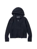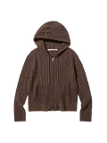 Трикотажный худи на молнии с классическим узором «косичка». Расслабленный силуэт и мягкость создают комфортный образ. Двусторонняя молния позволяет регулировать посадку, а передние карманы добавляют практичности.
