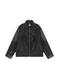[2WAY] Cropped Distressed Leather Jacket_Black Grey